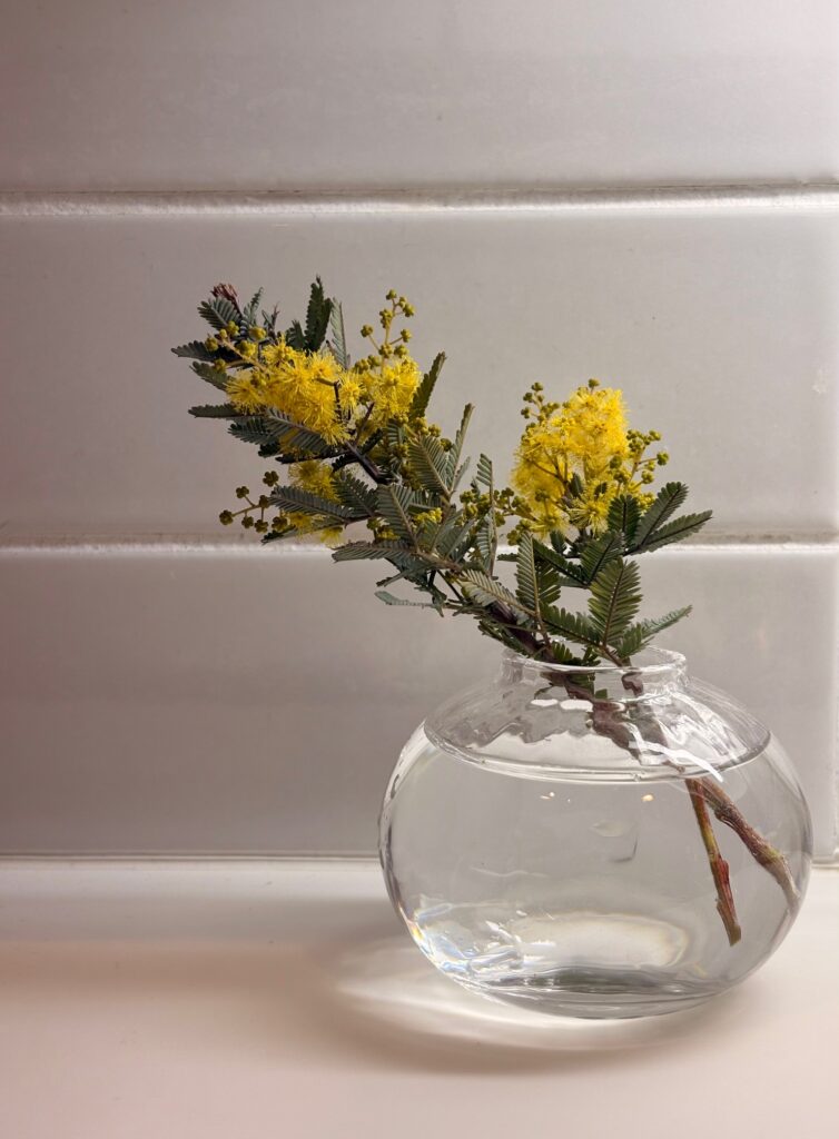 黄色ミモザ。 2026.03.17 スタッフブログ いつも、はちやのさかいのブログをご覧いただきありがとうございます。 2025年暮れに、ミモザの蕾がついたブログを投稿しておりました。桜前線のニュースがTVで流れだした今日この頃、やっと庭のミモザたちが、黄色に染まりだしました。待ちに待ったミモザの開花。味気なかった庭が一気に華やいだ景色になりました。来年もかわいい黄色の花を見せてほしいなぁ。